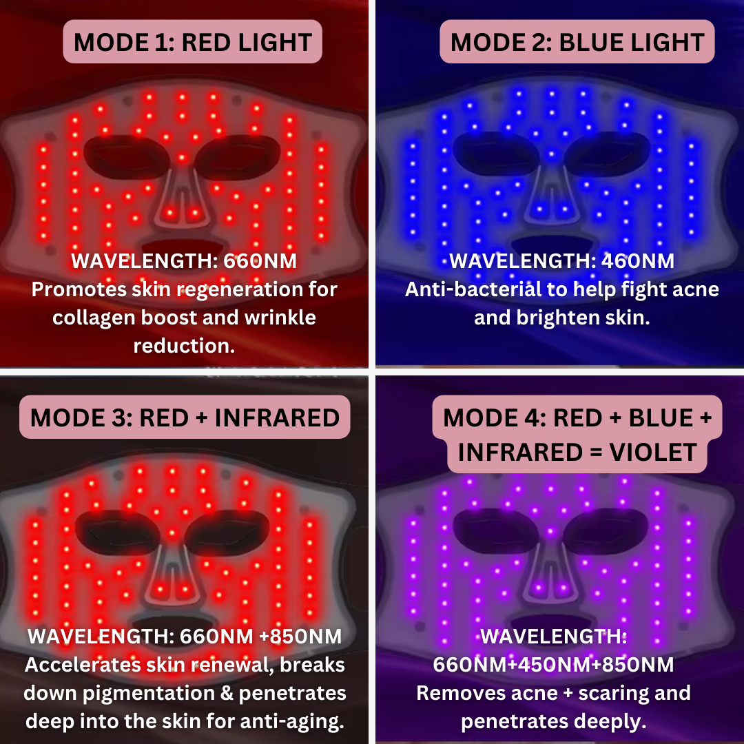- Consistency is Key: To achieve the best results, maintain consistency in your skincare routine. Incorporate the Premium LED Red Light + Infrared Face Mask into your daily regimen to experience visible improvements in skin tone and texture over time. Why not try a different setting each day!